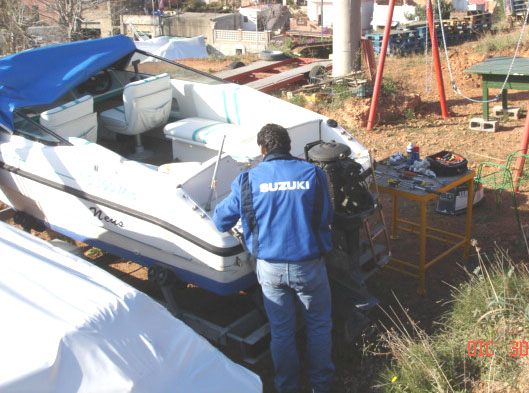 Algunos mecánicos del sector náutico trabajan coordinadamente para dar el servicio necesario. Si la reparación es de pequeña importancia desplazándose a la Marina seca, o si es de mayor porte desplazando el motor al taller.
